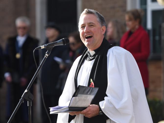 The streets were lined with crowds paying their respects as Rev Jon Drake of St Mary’s Church in Maidenhead gave a welcome, ahead of the national anthem.