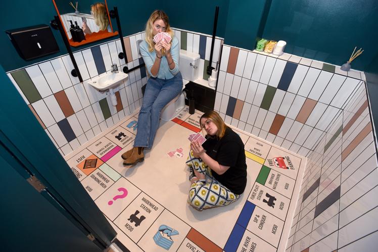 A Monopoly-themed floor also greets guests as they use the café’s toilets.