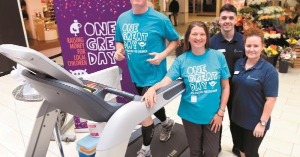Taking to the treadmill in the shopping centre at 9am on Saturday, he kept going until 5pm, during which time he covered 45 miles and raised about £2,000.
