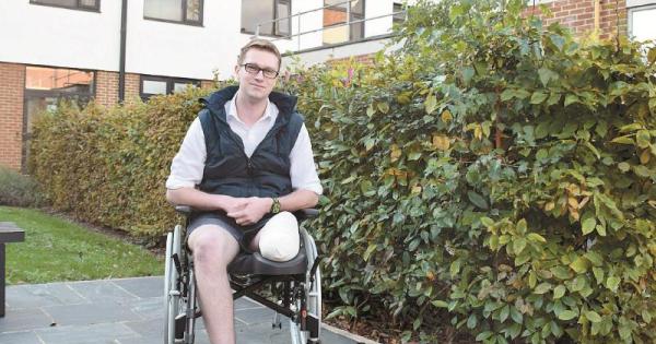 PC Tom Dorman, aged 26, had his left leg amputated below the knee after a serious collision in Norden Road in September left him with a ‘catastrophic bleed’.