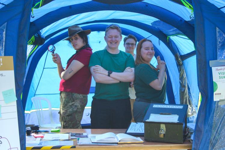 During the day, University of Reading archaeology student Jonathan Charmley led a tour for a group of visually impaired people from Berkshire Vision.