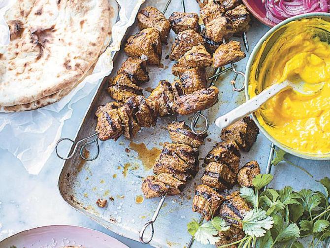 “Whatever the weather, these lamb kebabs are at their best cooked over an open flame, giving a smoky flavour and a lightly charred texture.
