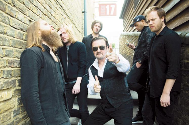 Upstairs, his touring gear was hanging in the bedroom. A Brent album will accompany the film, about which Gervais has said: “Even though the songs are funny in context, they’re not comedy songs as such. David Brent doesn’t think they’re funny. He thinks they’re important. And actually, they’re not terrible songs. And they’re insanely catchy. But the tragedy comes from the fact a 55-year-old tampon rep is singing rock songs about travelling across America picking up senoritas or trying to end racism in reggae songs while singing with a Jamaican accent.”