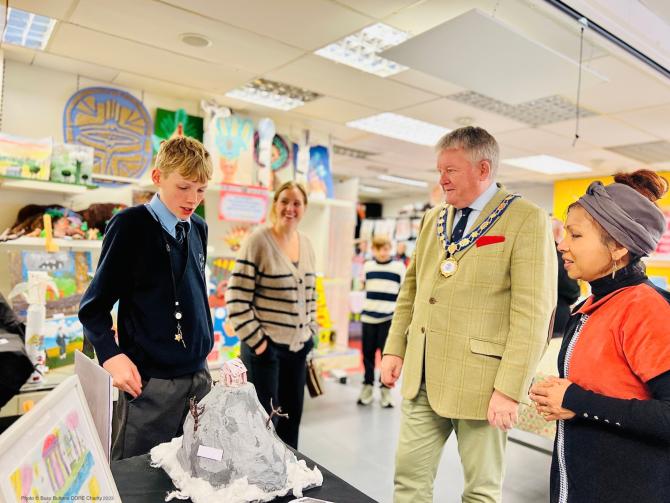 Royal Borough mayor Cllr Neil Knowles visited the charity’s exhibition on Friday, October 20 and spent time looking at the artwork and speaking to students.