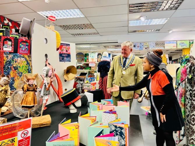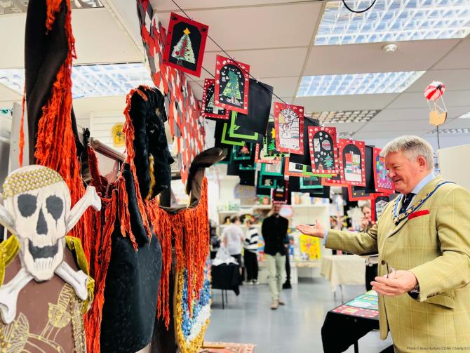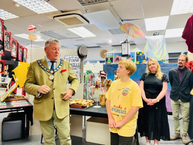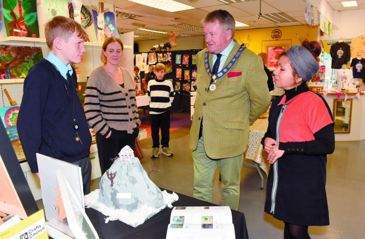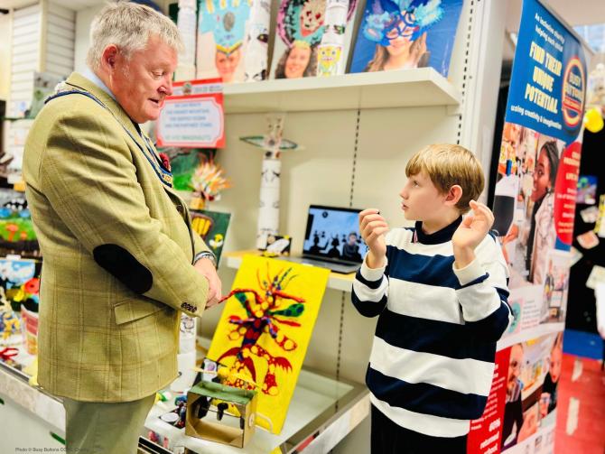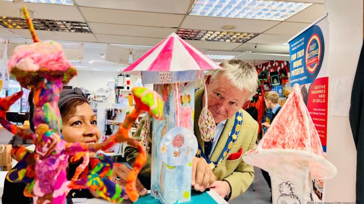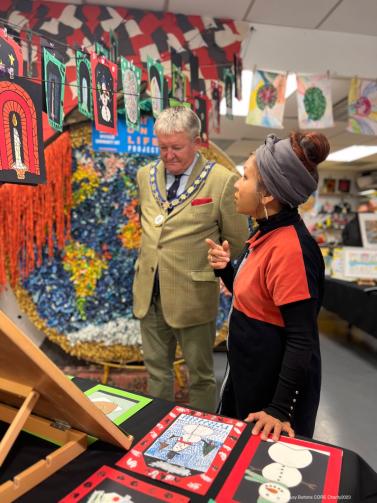Royal Borough mayor views students' artwork at Busy Buttons exhibition