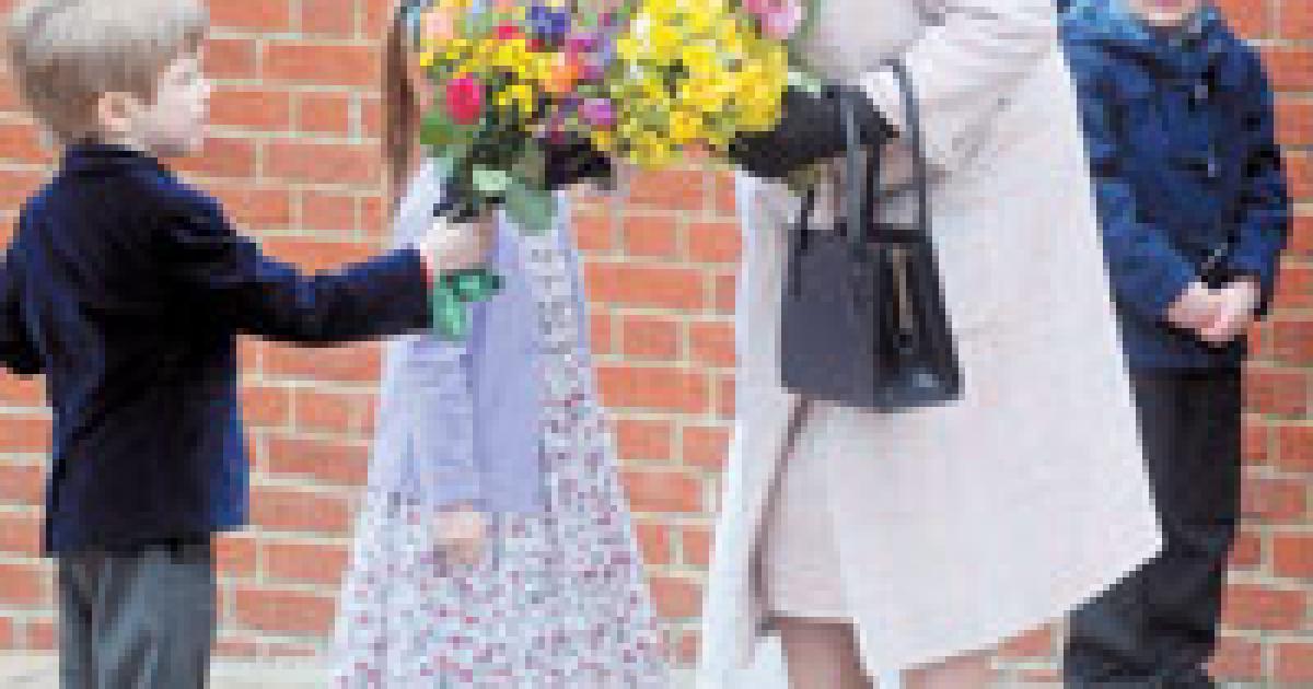 After the service the Queen was presented with posies of flowers by five children; twin girls and three boys.