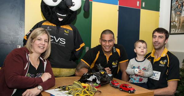 The youngsters on the children's ward at Wexham Park Hospital in Slough were visited on Thursday by Nathan Hughes and Hugo Southwell from London Wasps Rugby Club, along with their loveable mascot Sting.