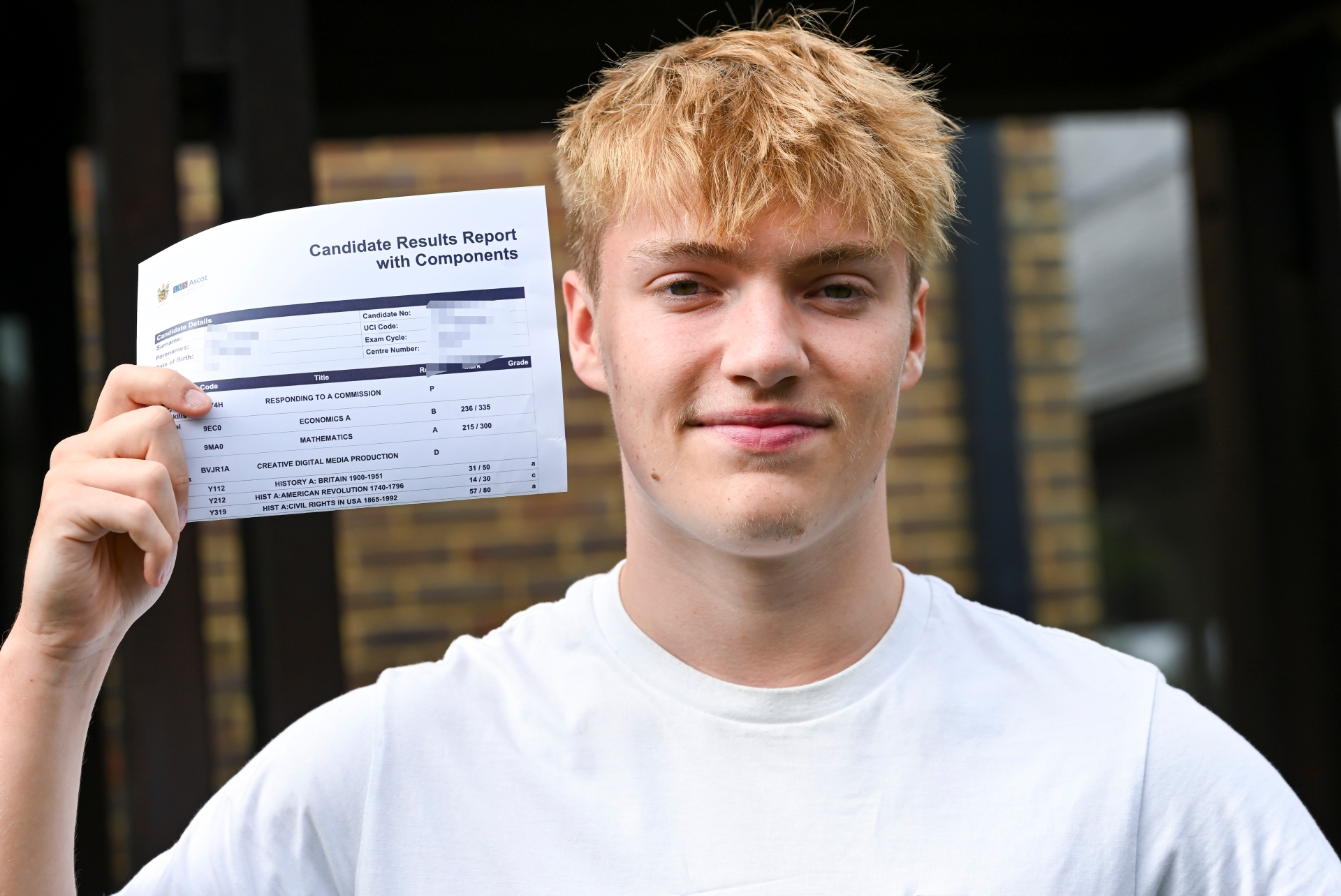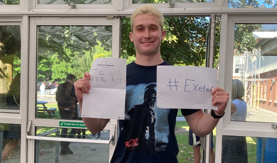 Max, who achieved an A, two Bs and a Distinction in Maths, Economics, History and Media, is pleased with his results and is excited to start studying Finance at Exeter University.