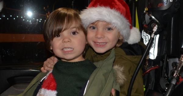Kit Hill, three and his brother Freddy, aged four, explored the inside of the crew’s fire truck.