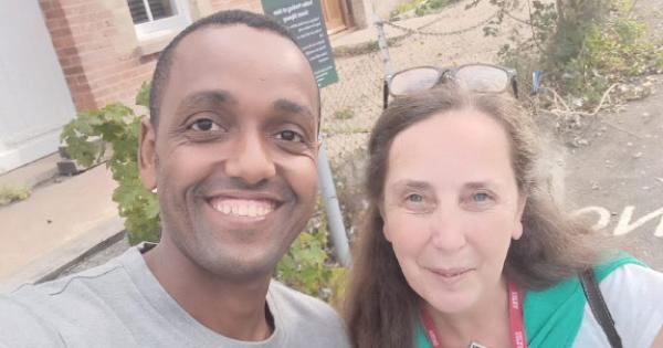 Ali is no stranger to helping, while he lived here in the Thames Valley he assisted with many clothes distributions and frequently handed out food to the homeless. So, we were touched but not surprised, when he spent some of his first pay packet to send shoes for us to give to someone else in need. The shoes went to another Sudanese man who has recently been forced to escape the horrific conflict in Sudan, described by the UNHCR as the world’s worst humanitarian crisis. This feels like the right person to walk in Ali’s shoes.