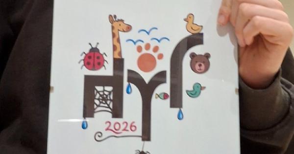 It includes a giraffe, ladybird, spider, duck, birds, a bear, a paw print and a spider web blended with the festival initials.