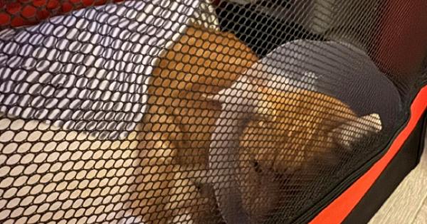 “He’s not allowed to walk on it, run on it or go up the stairs so he’s confined to the cage.