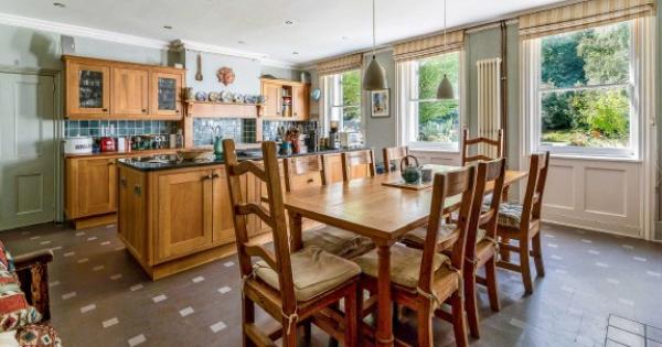 The kitchen has a story of its own. After a storm brought down a vast oak tree in “Gaffer’s Garden” on the estate, Crispin arranged for it to be milled, seasoned and transformed into the bespoke cupboards, fire surrounds and dining table that still stand today.