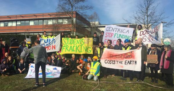Anti-fracking protesters gathered at Centrica HQ in Windsor today (Friday).
