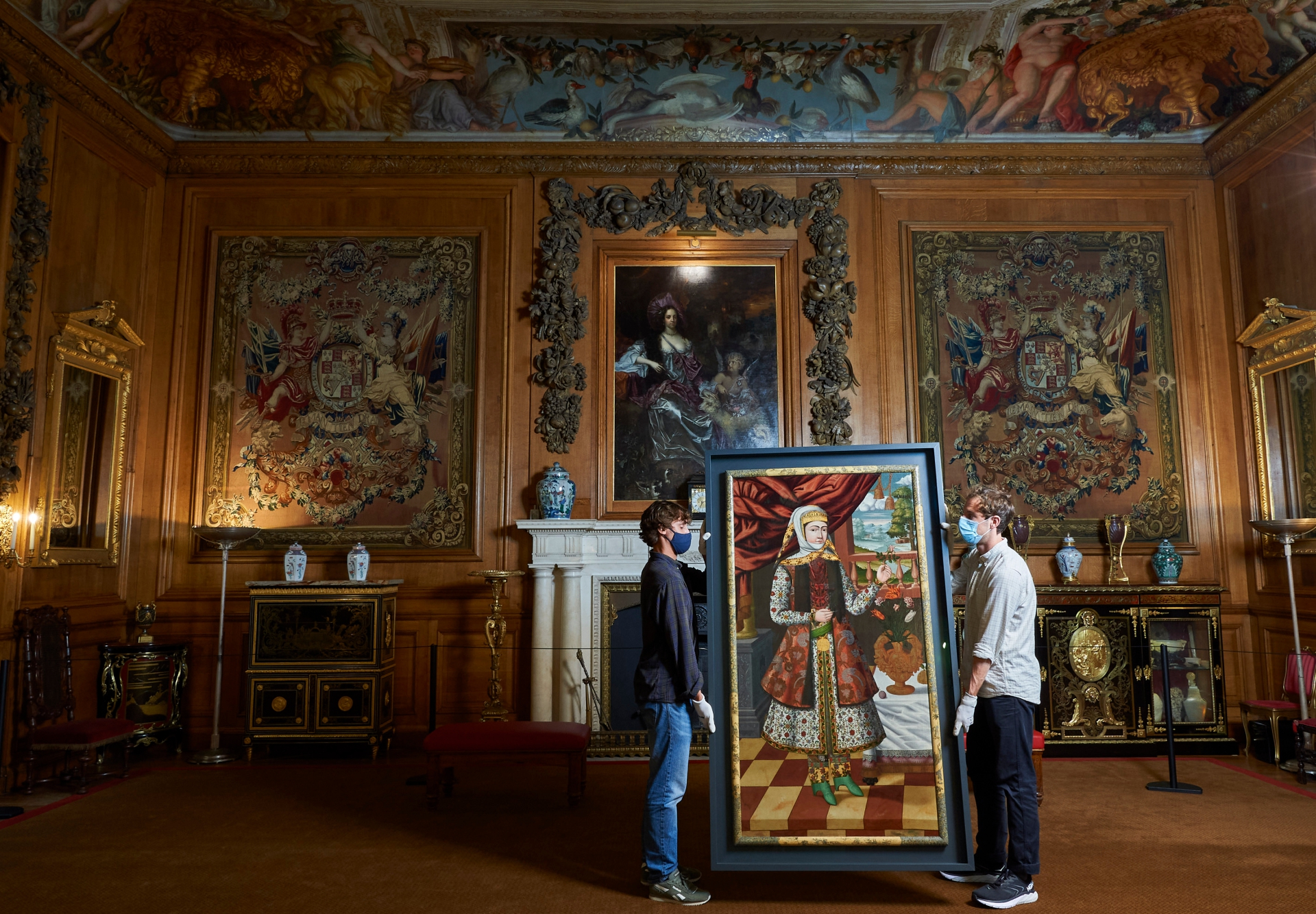 Staff at Windsor Castle move the portraits into place in the King’s Dining Room